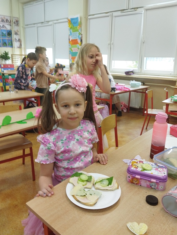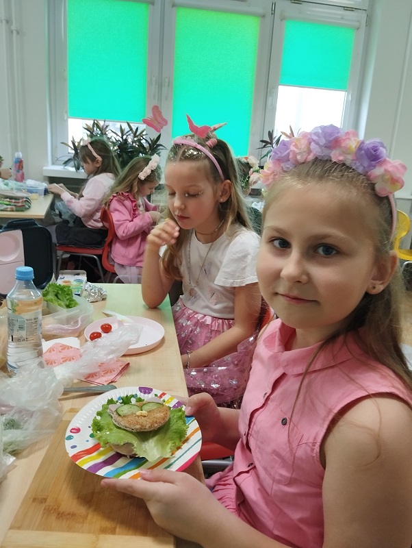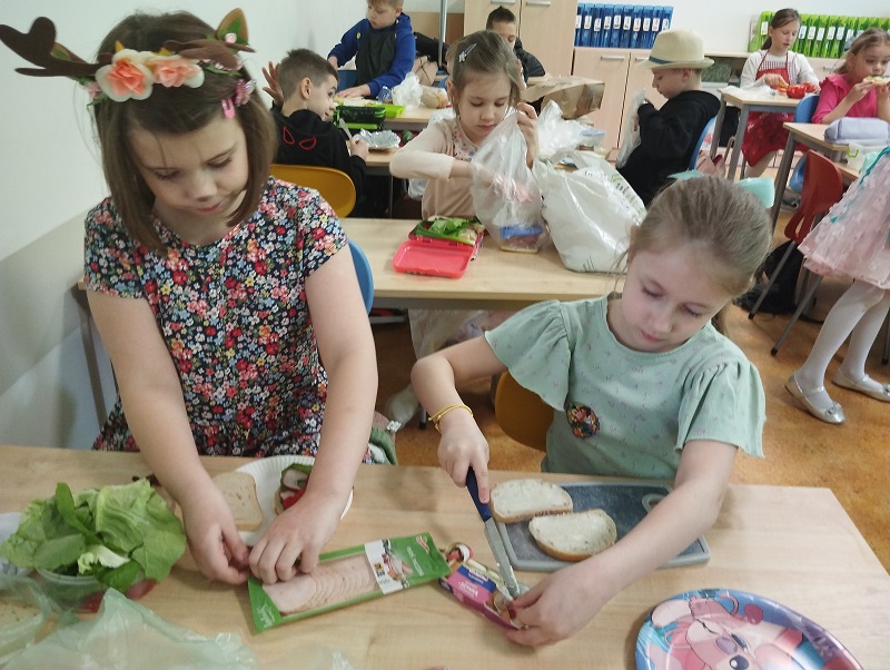 Na koniec w celu promowania zdrowych nawyków żywieniowych, samodzielnie przygotowywali sobie II śniadanie. Uczniowie do swoich kanapek wykorzystali świeże, kolorowe produkty, aby ich posiłek był nie tylko zdrowy, ale i atrakcyjny wizualnie.