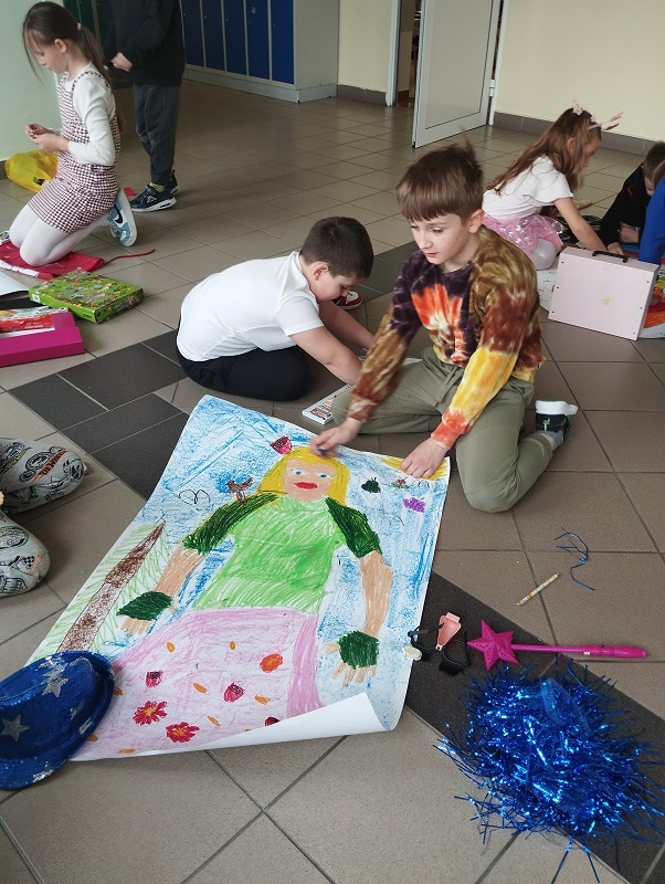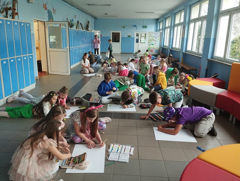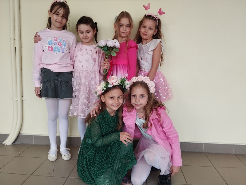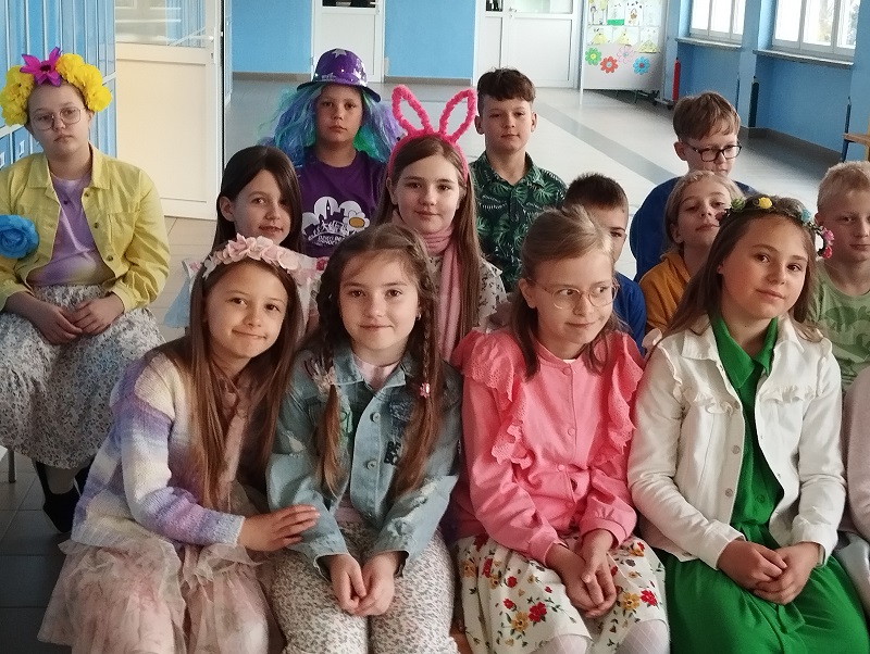 Nasi uczniowie mieli okazję wziąć udział w wesołych zabawach ze śpiewem, prezentując wcześniej przygotowane piosenki o tematyce wiosennej. Pracując w zespołach tworzyli oryginalne prace plastyczne, ukazujące symptomy wiosennej aury w jasnych, wielobarwnych kolorach, Nie zabrakło również wiosennego pokazu mody i konkursu na najciekawsze przebranie.